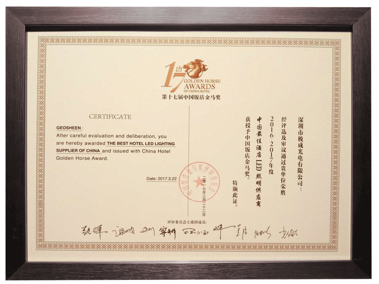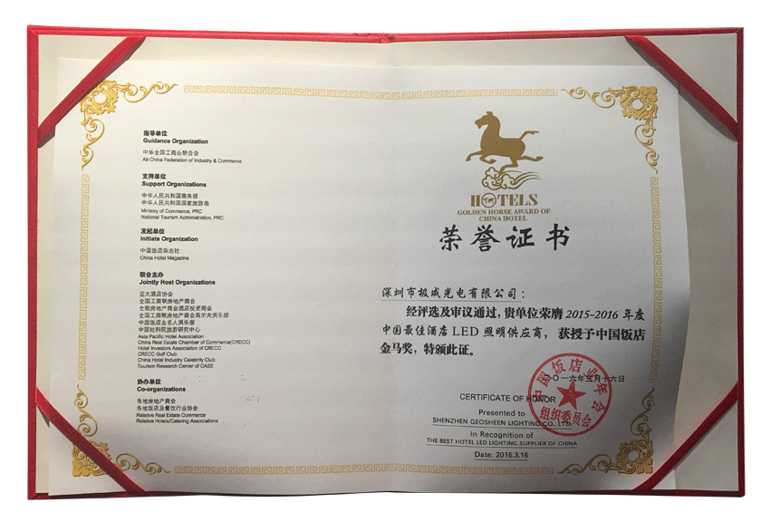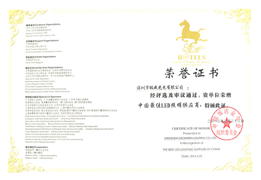 2013 中国饭店金马奖·中国最佳LED照明供应商奖