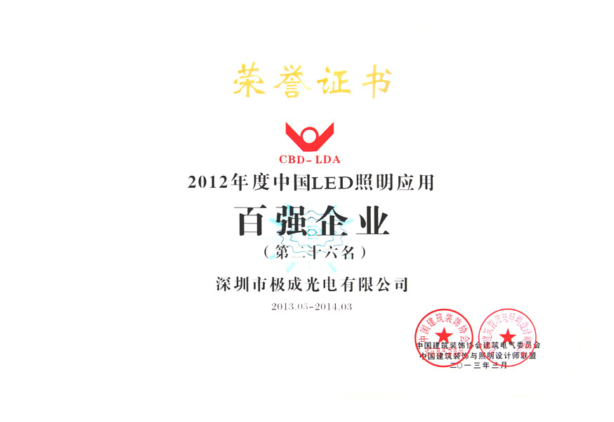 2012 中国饭店金马奖·中国最佳LED照明供应商