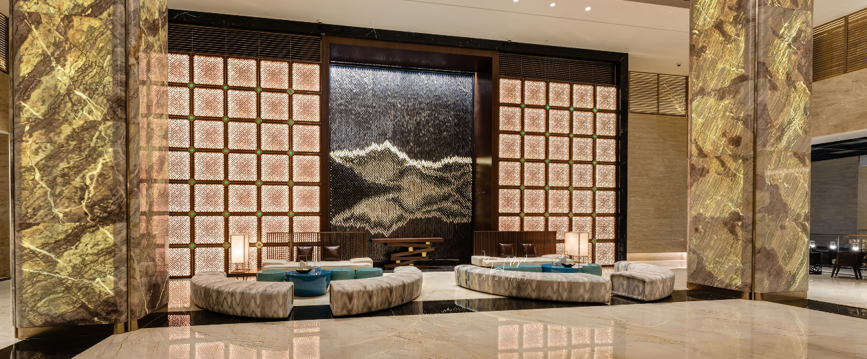柳州首家五星级酒店,它依山傍水,环境宜人,东临百里柳江,“岭树重遮千里目,江流曲似九回肠”的自然风景悦人心脾,西近CBD中央商务区及柳州风情港,兼有现代都市生活氛围。如莲花山庄所处位置相合,其酒店视觉设计既彰显柳州古城底蕴,又不失现代精神,两种截然不同的气质在莲花山庄这里平衡得恰到好处。