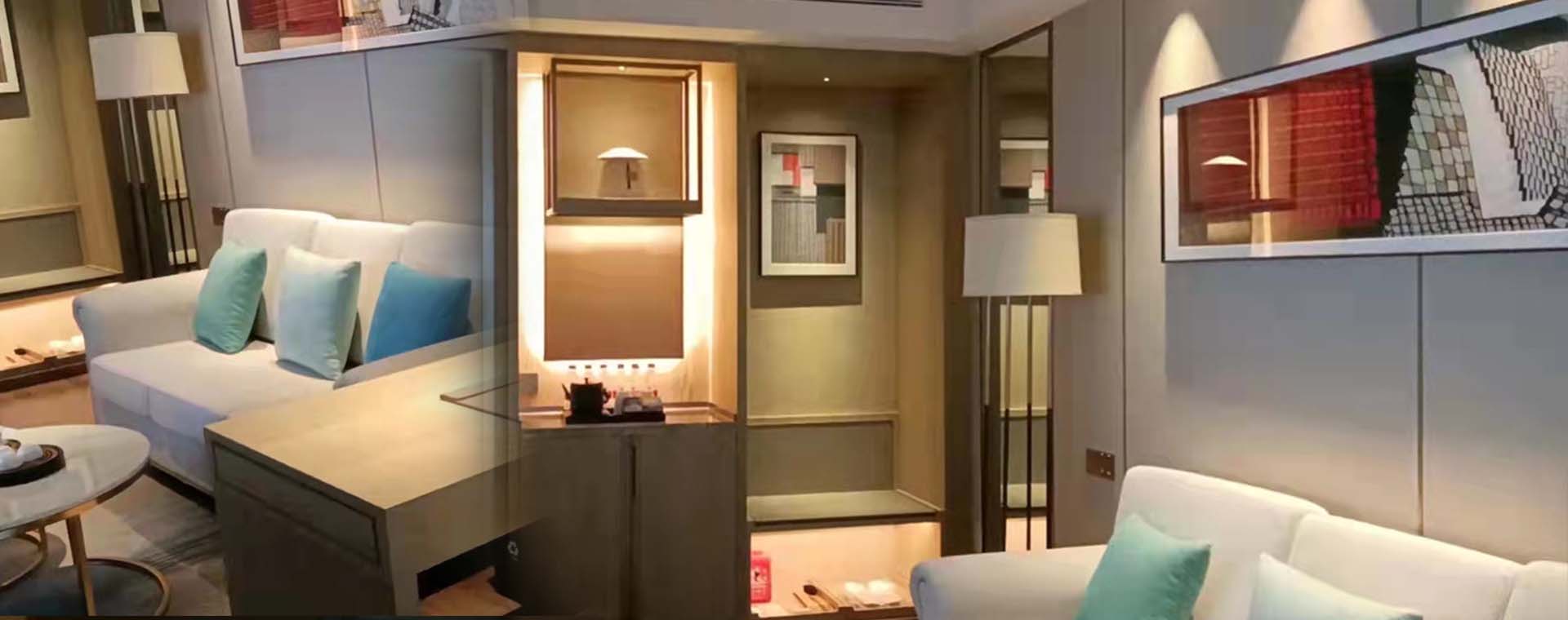 酒店灯光设计中,灯具并不是简单用来照明,还应当起到营造氛围,渲染主题的艺术效果,在空间设计里,合理运用灯光的价值,不仅能进一步衬托酒店的气质与形象,同时赋予空间丰富的情感与视觉效,Geosheen极成继长兴温德姆酒店后,再一次为温德姆品牌酒店提供了专业的灯光,助力营造典雅的空间氛围,舒适的入住空间。