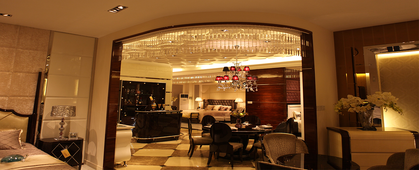 专业顶级酒店家具、顶级豪华家具是金凤凰产品定位,与之匹配的环境也将是豪华、奢侈的空间环境。为营造舒适豪华的购物环境与展示产品相呼应,采用极成LED AR111光源单头和三头格栅射灯,在全局照明的情况下,重点展示家具材质和色泽。同时,专业的设计师运用灯光的合理配置很营造出品牌本身所需的环境氛围。