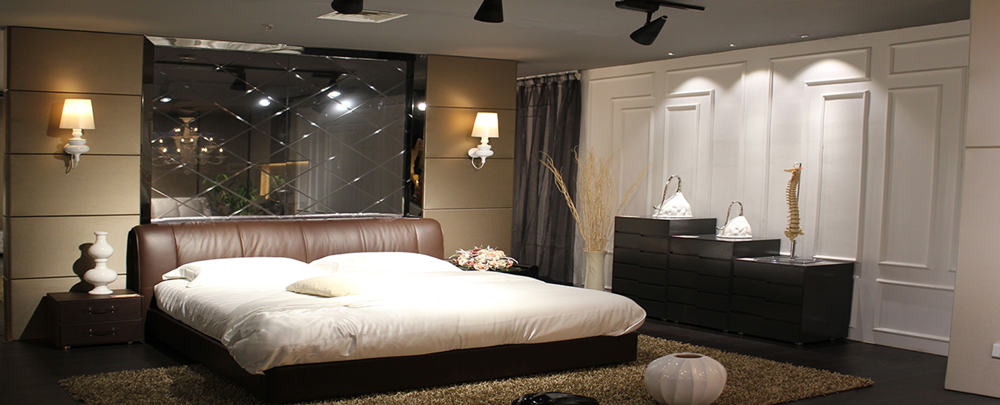 空间环境氛围的营造离不开专业的灯光,极成LED天花射灯下均匀的光斑,精致美观,充满情调和意境;聚焦D1轨道灯下的床,材质在重点灯光下高端大气而又舒适,皮质靠背柔软有质感,被子温暖温馨,让顾客见了有想躺下休息的感觉。多种灯光的合理配置,照明层次鲜明,环境氛围舒适自在。
