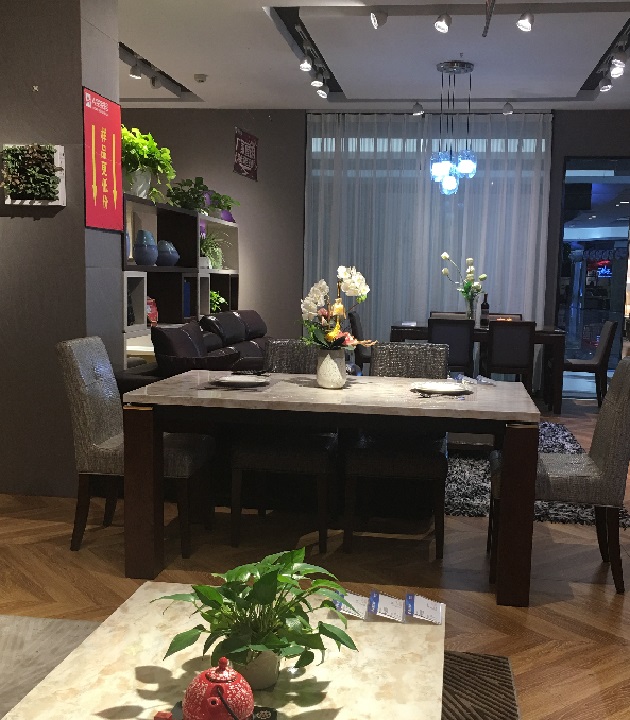 实木家具对灯光的要求十分严格,过高亮度,容易曝光,而亮度不足,则产品的材质和色泽不能得到展示。该展厅选择了LED AR111光源格栅射灯,光线均匀,家具产品在灯光下完全呈现,色温选择3000K, 与实木家具色调一致,更好传达产品特质。LED照明节能环保健康的特点与其企业致力于健康环保且沉稳大气的实木家具理念一致。