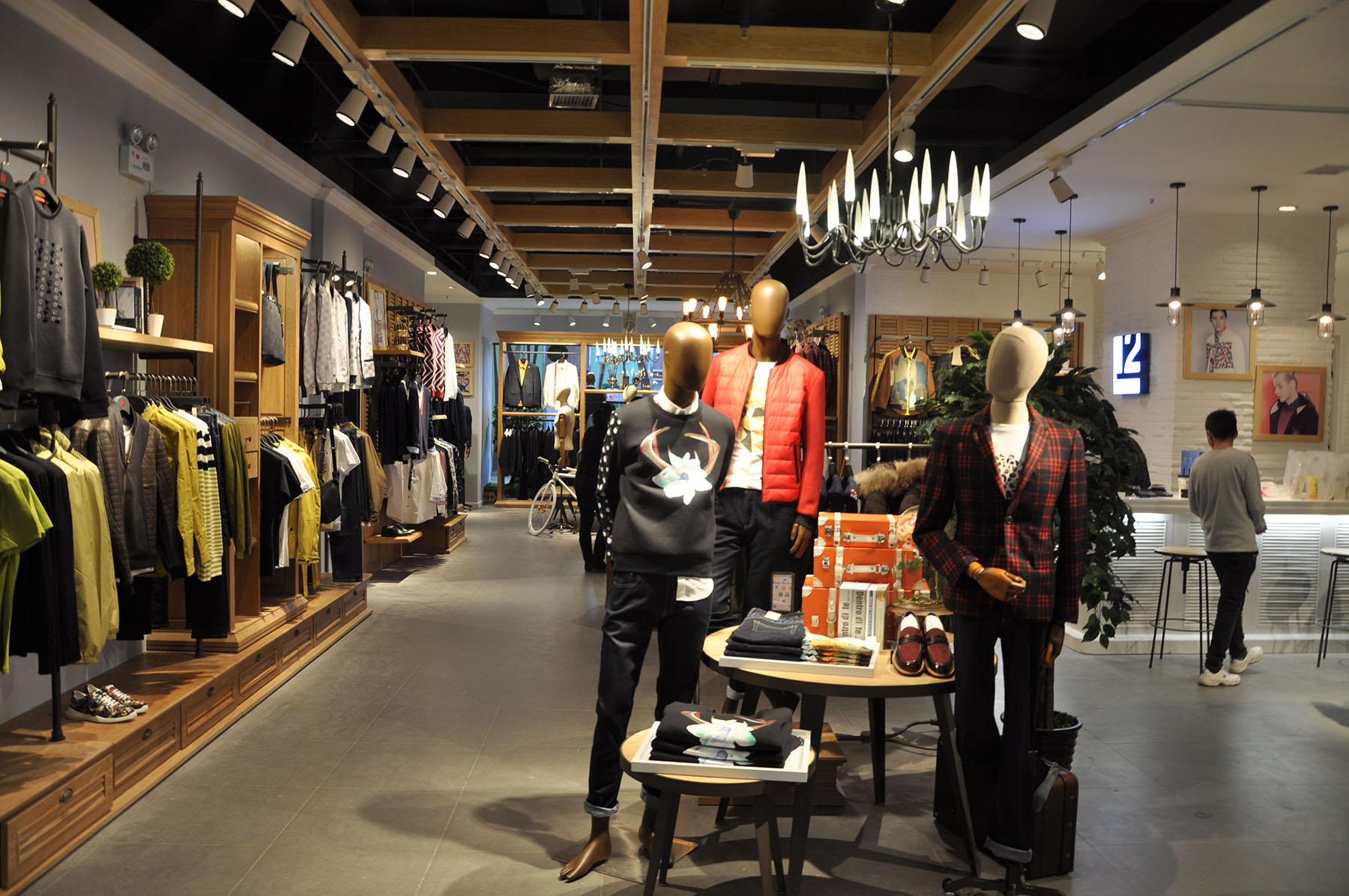 L2作为时尚休闲的男装品牌,其店面装修设计简洁凝结,呈现出优质服装店光环境,顾客购物过程中视觉舒服,心情舒畅,就会停留更长的时间,进而加强商场的品牌竞争力,选用极成暖色温(2700K),营造温和舒适环境,精选精致的格栅射灯G3系列,光线柔和,小尺寸,高光效,可灵活精准调解光照角度,营造舒适的购物环境。