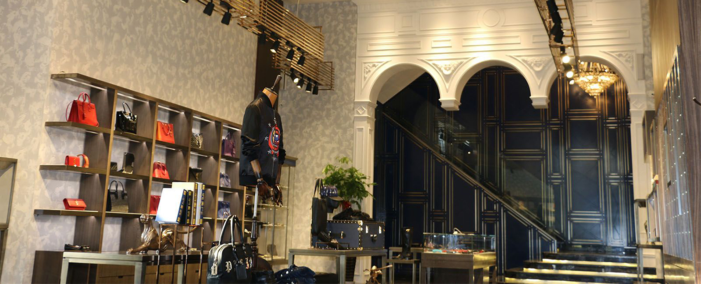 相信走进店铺就被店里面的时尚、品质的服饰吸引住了吧,完美的陈列,完美的布局,让你似乎已经置身一个男性自由享受生活的环境当中。4寸筒灯不但照明了前台的结账工作,大方时尚的外观形象直接成为店铺的装饰元素;C1及S轨道灯具根据时尚款式及特殊搭配的需要调节角度精准强调时尚流行,在特殊地方还使用DLT3242 、DLT3123, 重点照明与基础照明相互融合,形成立体感超强的空间环境,自由轻松的空间环境完美诠释 Alfred Dunhill Homes奢华生活方式的独家概念。