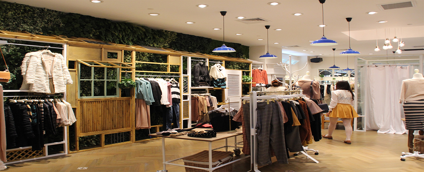 ONE MORE作为一个年轻、时尚、潮流的女装品牌,其店铺风格清新自然,天然的木质展示架与大面积绿色的结合,显得活泼生动。为了营造更好的环境氛围,极成选用DLT3330天花灯,其暗装式的特点,与环境高度融合。高显色能满足品牌最流行色彩的呈现。