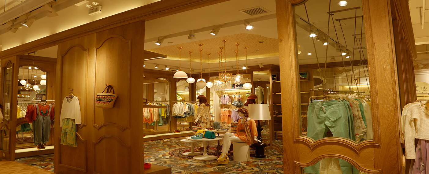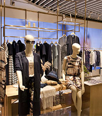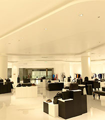 相比于女装色彩丰富,设计多样的特点,男装较为单一的色彩和设计则使整个店铺稍显沉闷。照明设计因此就显得尤为重要。在GXG专卖店中,极成使用大量的D系列轨道灯作为照明灯具,明亮的灯光照射在墙壁和陈列商品上,暗部与亮部的光影交叠,配合英伦风格的装修设计,使整个店铺显得灵动起来。