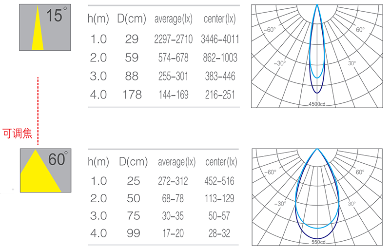 - 光束角15-60°