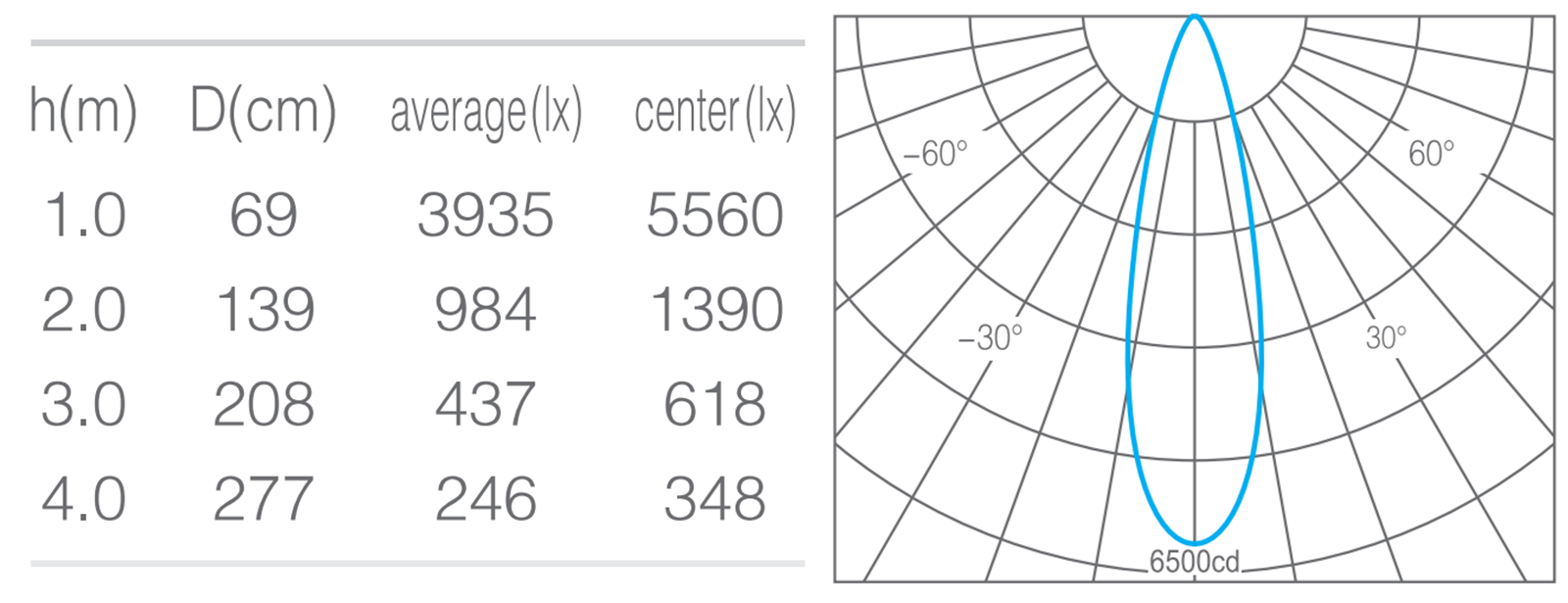 光通量(M) (LUMINOUSFLUX):2249lm、2342lm、2530lm、2530lm (30°)
