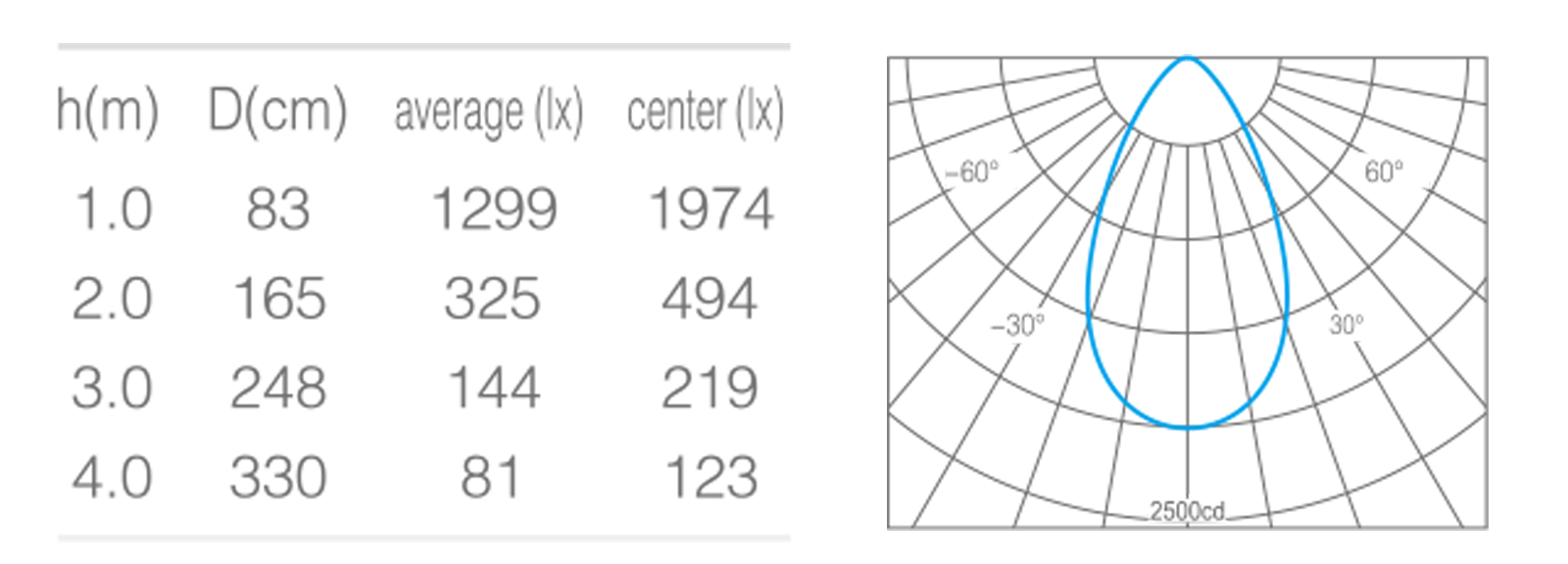 - 光束角50°