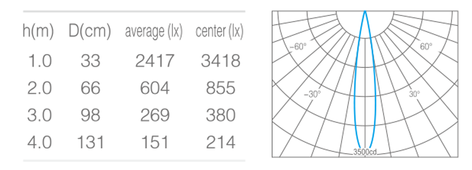 - 峰值光强3418cd
