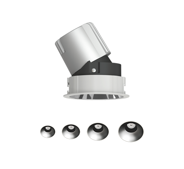 实现智能控制水平旋转0-360°,垂直旋转0-35°,亮度和光束角调节,高空调整灯光变得安全便捷。嵌入式、轨道式两种安装方式可选。