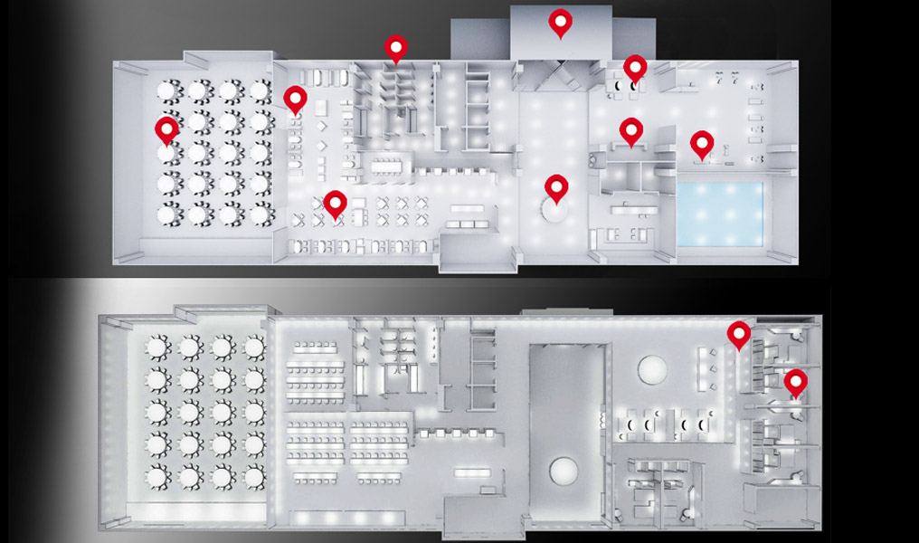 酒店多功能厅通常用于接待、餐饮、宴请、会议、论坛等活动,在酒店构成中宴会厅具有很重要的地位。多功能厅照明应为塑造多种氛围进行合理的配置,可采用智能控制实现模式的多样性,如宴请模式、会议模式、清扫模式等,还可以在视觉效果上有不同的艺术氛围如华贵、神秘、浪漫、欢快等;灯具色温3000K,照度≥300Lx,显色性≥85。